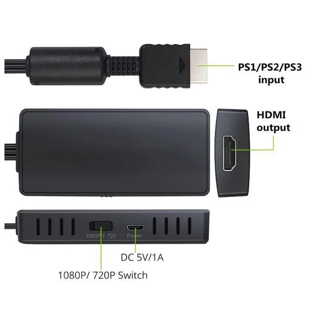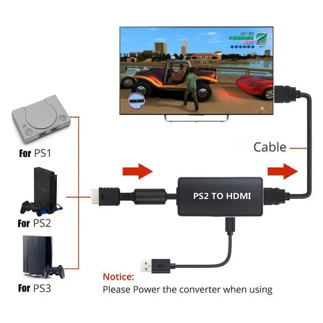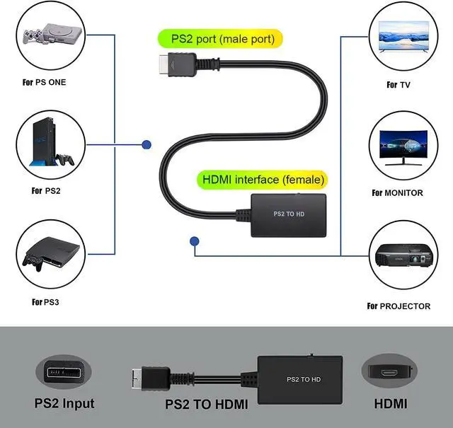 Features- Non-OEM adapter for PS2, enables playing PS2 games on HDMI TVs/monitors with full digital audio and video