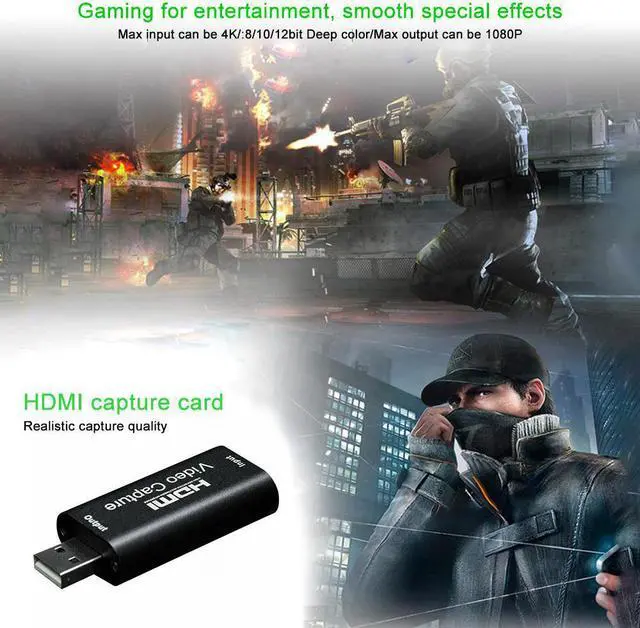 Card Capture Streaming VHS Board Capture USB 3.0/2.0 /IOS/Type-C To Cards Grabber Recorder Box For PS4 Game DVD Description:This USB 2.0 capture card can capture and audio at the same time, and can transmit audio and signals to a computer or smartphone for preview and storage. And it is suitable for high-definition acquisition, teaching recording, imaging, etc.Features:Support maximum input resolution up to 4K.Support maximum output resolution up to 1080P.Support 8/10/12 bit color depth.When using standard AWG26 cable, the input transmission distance is up to 15 meters (1080P and below resolution).Support most acquisition software, such as for VLC, for OBS, for Amcap, etc.Support for Windows, for Android, for MacOS.Conform to USB UVC standards.Conforms to USB audio UAC standards.No external power supply is required, so it is compact and easy to carry.Specifications(about): resolution: max input can support 3840×2160@30Hz / 4K output resolution: max output can be 1920×1080@30Hz input format: 8 / 10 / 12-bit deep color output mode: YUV / JPEGSupport audio format: L-PCMSupport AWG26 standard cable: input 15 meters, AWG26 standard cable.Maximum working current: 0.4A / 5VDCOperating temperature range: (-10 to + 55 )Size (L x W x H): 64x28x13mm/2.52x1.10x0.51inWeight: 21.4gPacking List:1 * Audio Capture Cards Set 1 * Manual