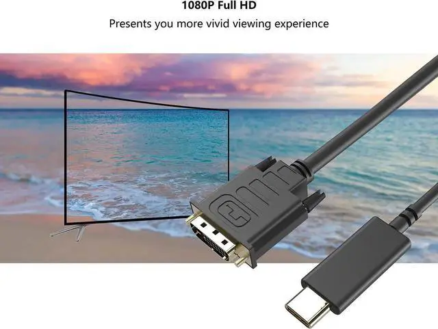 Excellent Design: Advanced Type C to DVI cable for extra durability and user-friendly non-slip design for easier plug and unplug. Support video resolution up 1920*1080P@60Hz. A perfect solution for traveling and presentations. Durable material USB C to DVI cable is made of High Purity Copper Wire. So that you no longer have to suffer the embarrassment of accidentally suffered a broken cable. USB C to DVI Cable The material adopted by this cable is excellent which has both durability and extensibility. Easy to install and use. High-quality Cable Durable cable not only stay tangling-free but also flexible enough to be wrapped up and put in a bag.