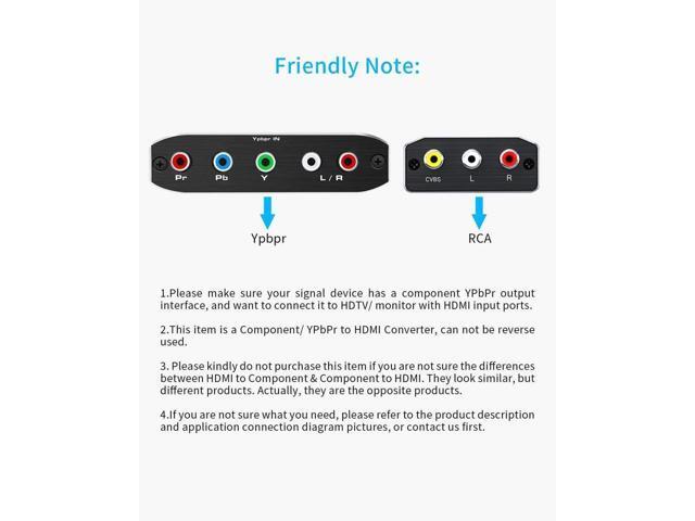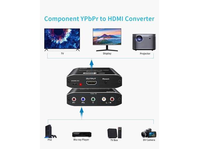 - Component to HDMI, Component to HDMI Converter, YPbPr to HDMI Converter Supports Video Audio HDMI V1.4 for DVD PSP Xbox 360 PS2 Nintendo to HDTV Monitor and Projector (Black)