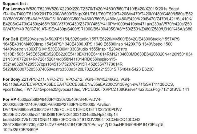 Lenovo E530, L430, E43, U410, E49, K49, G50-75M(New Add)