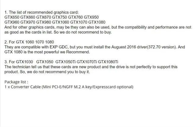 If you also want to buy the EXP GDC Adapter with NGFF M.2 A Key Cable Whole set / Exp GDC Adapter with Mini PCI-E Cable whole set, Please feel free to message us.