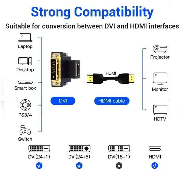 Vszerda DVI Male to HDMI Female Adapter 90 Degree Down Angled 4K 1080P for Computer HDTV Graphics Card