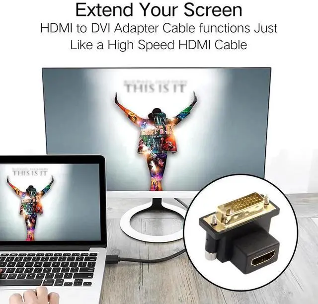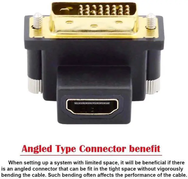 • This adapter allows you to connect your DVI to HDMI connection cable at angled!