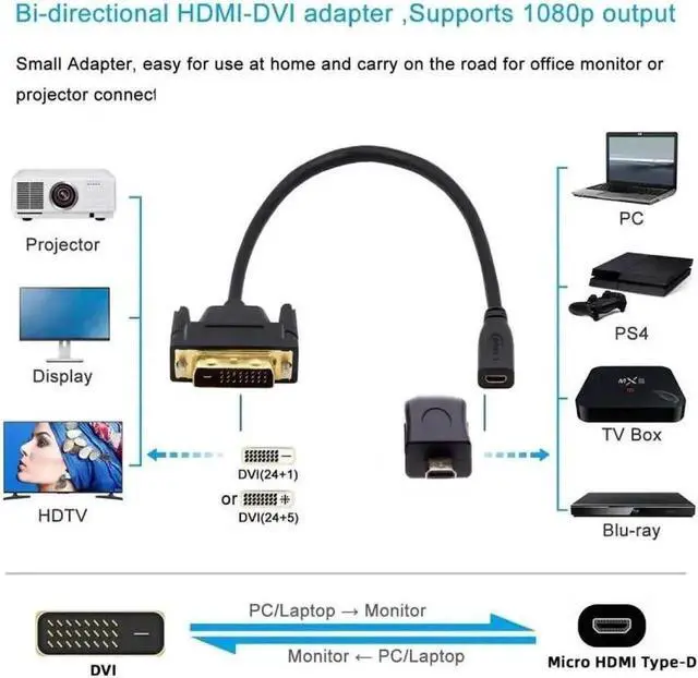 DVI 24+1 Male to Micro HDMI 1.4 Type-D 4K Female Extension Cable for Computer HDTV Graphics Card UHD