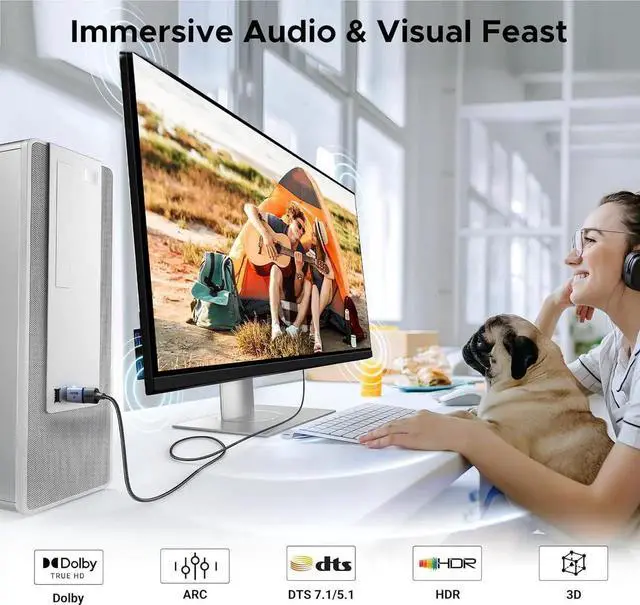 Universal Compatibility: Compatible with DP-enabled laptop, desktop, graphics card (AMD, NVIDIA). Connect to an HDMI-enabled TV, projector, monitor, VR headset, or others for video and audio transfer. Not compatible with