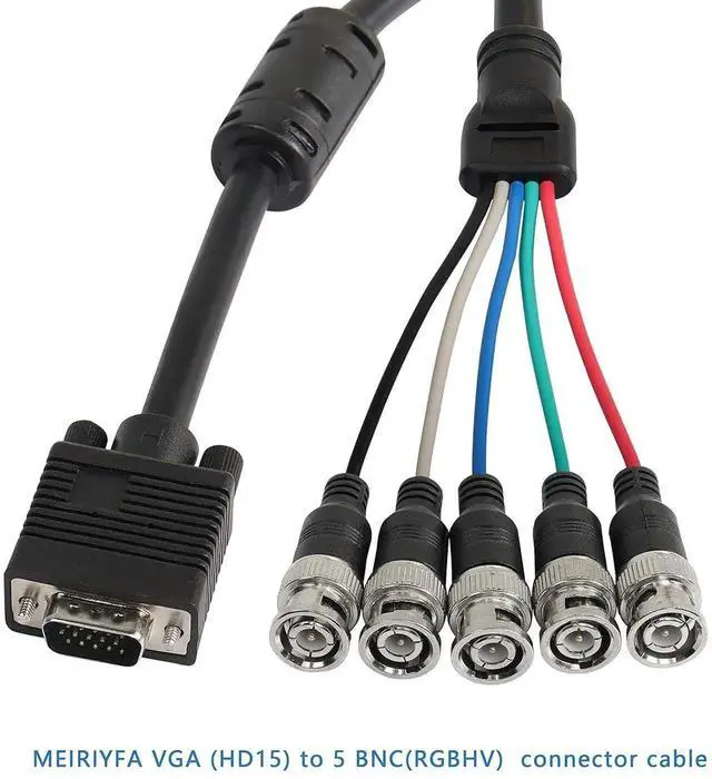 VGA(HD15) to BNC Video cable, also called RGB component interface.It consists of five independent input units of R, G, B, H, V. 5 Internal Coax Lines Supports Highest Resolutions for most Monitors.