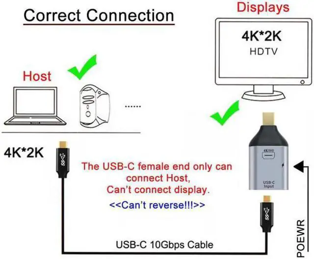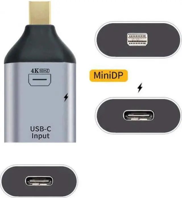 USB-C Type C Female Source to Mini Displayport Sink HDTV & PD Power Adapter 4K 60hz 1080p for Tablet & Phone & Laptop