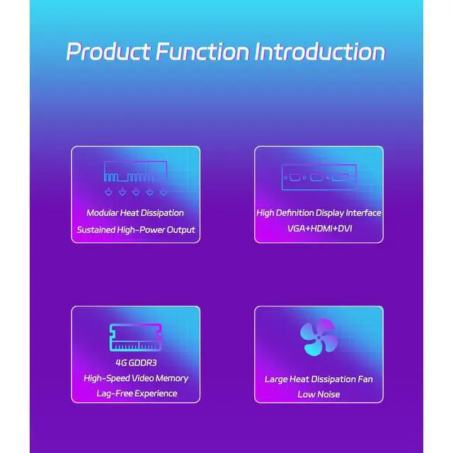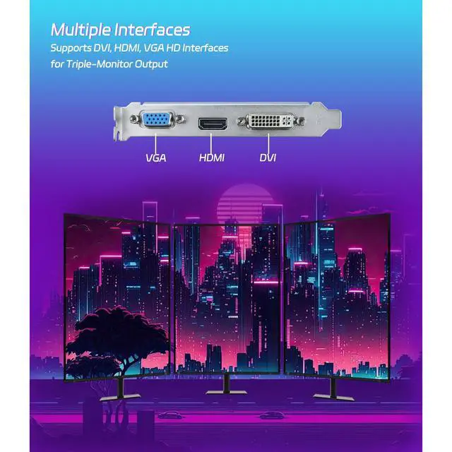 3.Versatile Display Options and Enhanced Connectivity: Standard display connectors include HDMI 2.0, DVI and VGA, providing flexibility and compatibility with a variety of monitors and display configurations. Equipped with PCI Express X16 3.0 bus interface, this graphics card ensures fast and stable data transfer.