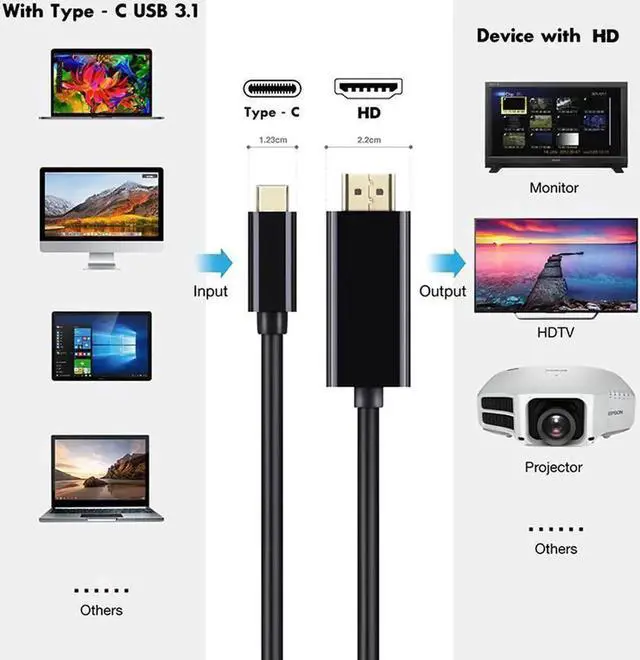 Compatibility: The USB C to HDMI cable only works with USB-C laptop/ cellphone/ tablet that supports DP Alt Mode (video output over Type-C port) or Thunderbolt 3.