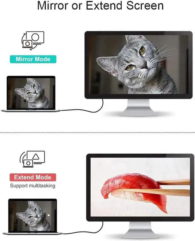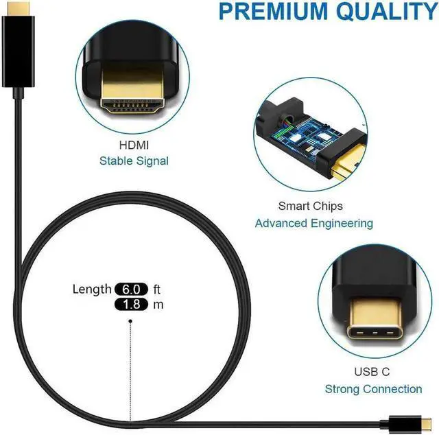 This USB C to HDMI 6FT Cable enables you to connect a USB C computer or phone to an HDMI-equipped display, monitor, projector. From small screen to large screen, its a good choice to share ideas with your partners or enjoy a better visual feast with your family.