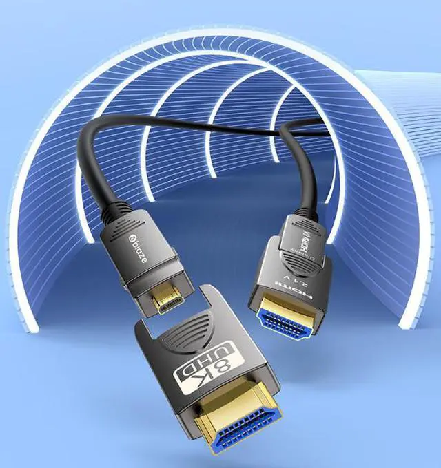 Fiber Optic Core for Long-Distance Reliability: Unlike traditional copper cables, this active optical cable (AOC) uses fiber optics to transmit data via light. This allows for longer runs (e.g., 10m, 15m, 20m+) without any signal degradation, making it perfect for home theater installations and commercial AV setups.