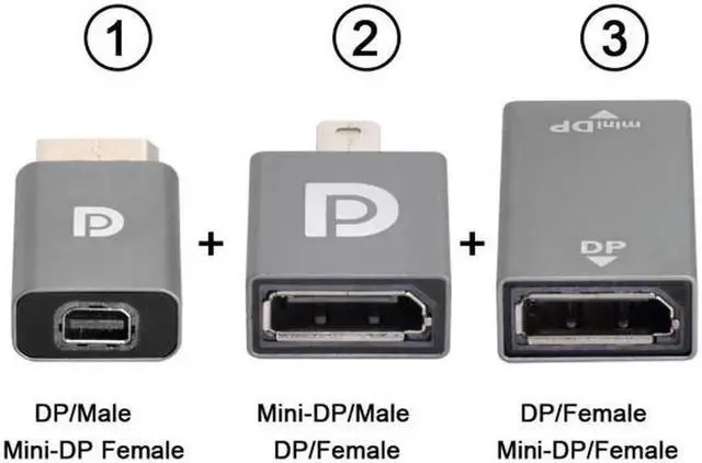 The package included: one DP male to Mini-DP female, one DP female to Mini-DP male, one DP female to Mini-DP female.