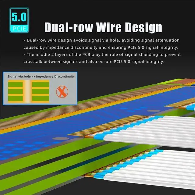 PCIE 5.0 x16 Riser Cable Unleash 64GB/s Peak Speed: To achieve full PCIE 5.0 x16 bandwidth (64GB/s) with compatible hardware. No driver installation required (hot swapping not supported).
