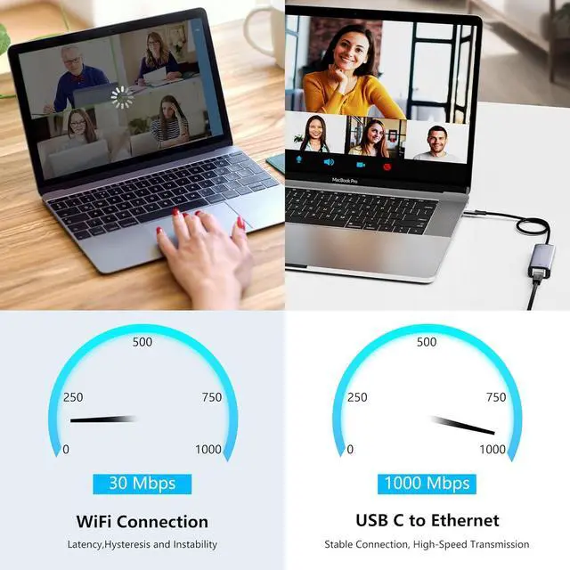 PLUG AND PLAY: USB -C to ethernet adapter is easy to plug and play. Nothing to install or download required. Easily reaching gigabit speeds on the local network.