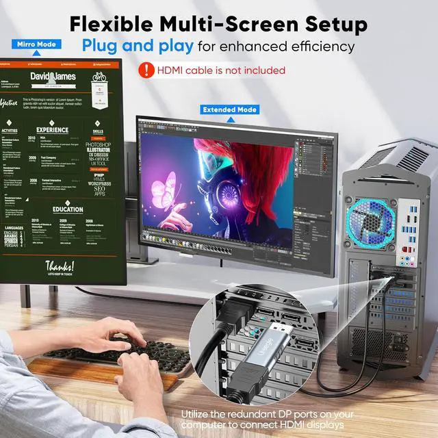 EXTENSIVE COMPATIBILITY & STABLE PERFORMANCEThis DP to HDMI adapter seamlessly connects your DisplayPort equipped desktop laptop or GPU to an HDMI monitor TV or projector. Rigorously tested for reliable performance with major brands like HP and more. Enjoy a stable and flicker-free connection for work and entertainment. CRYSTAL CLEAR 4K UHD VIDEO & AUDIOSupports high-definition video output up to 4K (3840x2160) resolution at 30Hz delivering stunningly sharp images and vibrant colors for presentations movies and daily computing. Simultaneously transmits high-quality audio through a single port eliminating the need for extra cables. PLUG AND PLAY NO DRIVERS REQUIREDTruly convenient setup! No need to install any software or drivers.