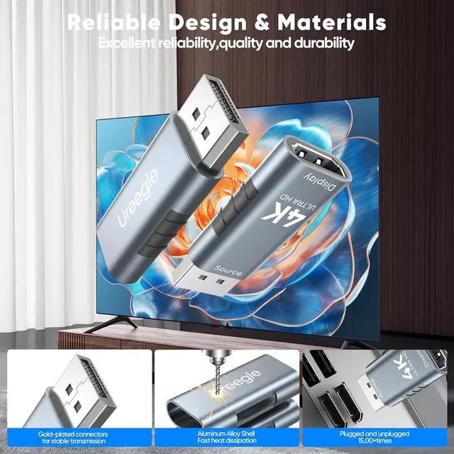Simply plug the adapter into your device's DisplayPort and connect your HDMI cable. It works instantly making it a perfect tool for home office and classroom use. DURABLE DESIGN WITH GOLD-PLATED PORTSBuilt for reliability and longevity. The gold-plated connectors resist corrosion and minimize signal loss ensuring a secure fit and superior conductivity. The robust construction is designed to withstand daily plugging and unplugging. What You GetIncludes 5pack Ureegly 4K DP to HDMI Adapter. Backed by a two-year warranty and 24-hour customer support via email.