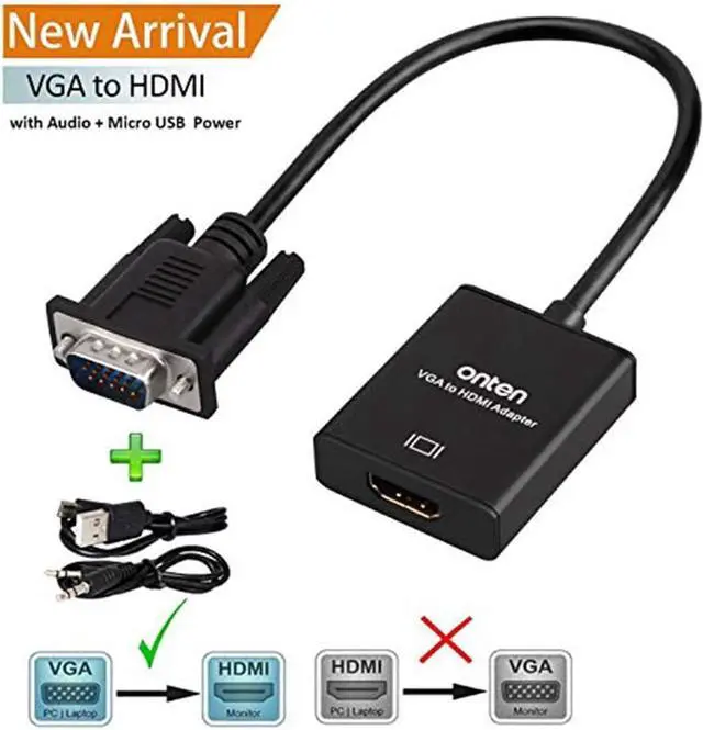 Plug and play: No driver needed easy to use fast convenient and compact. Gold-plated HDMI interface high wear & corrosion resistance stable and durable for HD data transmission. Wide compabitity - The VGA-HDMI adapter is compatible with old-styled notebooks desktops laptops which only has VGA ports to any HDMI-equiped devices. After Sale - Exclusive Onten Unconditional after sale ensures long-time satisfaction of your purchase; Friendly and easy-to-reach customer service to solve your problems in 24 hours.
