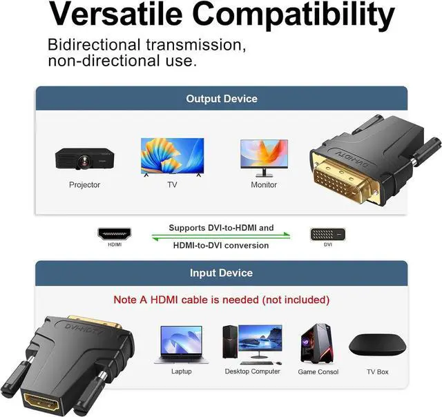 Bi-directional Functionality: Seamlessly convert DVI to HDMI or HDMI to DVI perfect for connecting computers game consoles TVs projectors and laptops. 4K