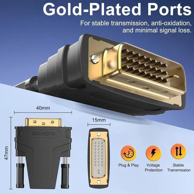 Universal Compatibility: Fits DVI-I 24+5 & DVI-D 24+1 ports (male/female adaptable) works with DVI video cards PS3/PS4 cable boxes and more.
