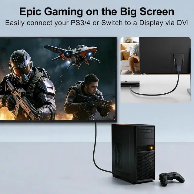& Full HD Support: Delivers crisp video up to 4K@30Hz 1920x1200 and 1080P@60Hz (not for 144Hz); audio transmitted separately (DVI doesnt support audio natively).