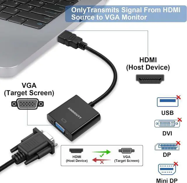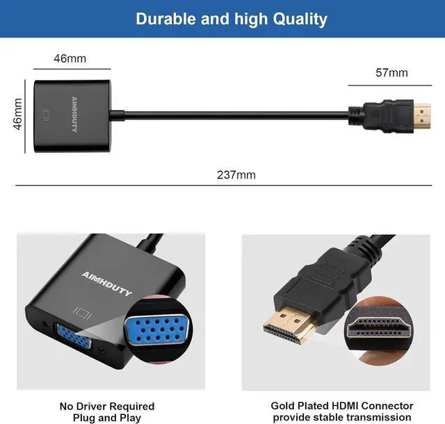 AIMHDUTY 3-PACK well desgined HDMI to VGA adapter connects a computer desktop laptop or other devices with HDMI port to a monitor projector HDTV or other devices with VGA portBuilt in advanced IC Chip make it very stable to converts HDMI digtial to VGA analog signal.
