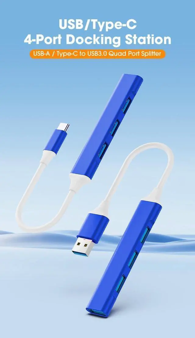 (Note: only one port supports USB 3.0 speeds; the others are USB 2.0. ) Perfect for boosting your laptops connectivity at home work or while traveling. Slim & Travel-Friendly Design Designed for portability this USB-C hub features an ultra-slim profile that fits easily into your laptop bag backpack or pocket. Whether you're commuting traveling or working remotely this compact USB hub adds essential expansion without adding bulk or clutter to your setup. Universal Compatibility Works flawlessly with all USB-C devices including MacBook Pro/Air iPad Pro Chromebooks and Windows laptops. Plug-and-play support means no drivers are neededjust connect and go. Compatible with macOS Windows and Chrome OS. Ideal for students business users and professionals. Durable Aluminum Build Crafted with a premium aluminum shell this USB hub provides better heat dissipation long-lasting durability and a sleek modern look. The metal casing not only protects your internal components but also makes this adapter a reliable part of your everyday tech toolkit. Built-In Protection Equipped with integrated over-current and short-circuit protection this USB-C hub ensures safe stable performance for all connected devices. Its designed to protect both the hub and your accessories from damage keeping your workspace efficient and your data safe.