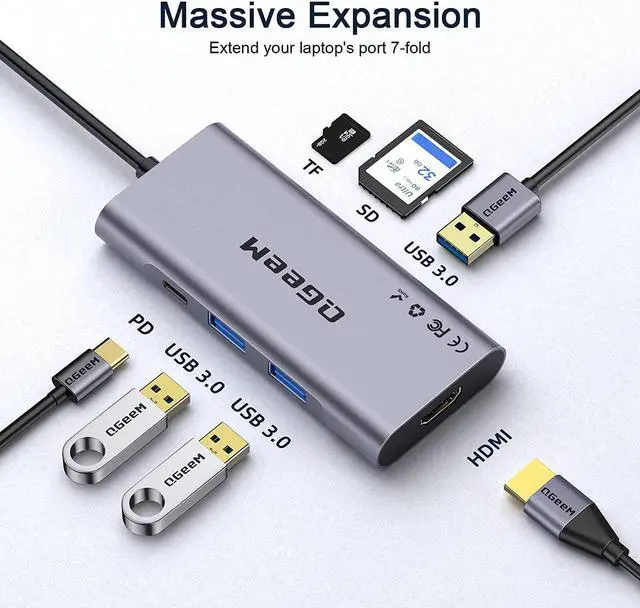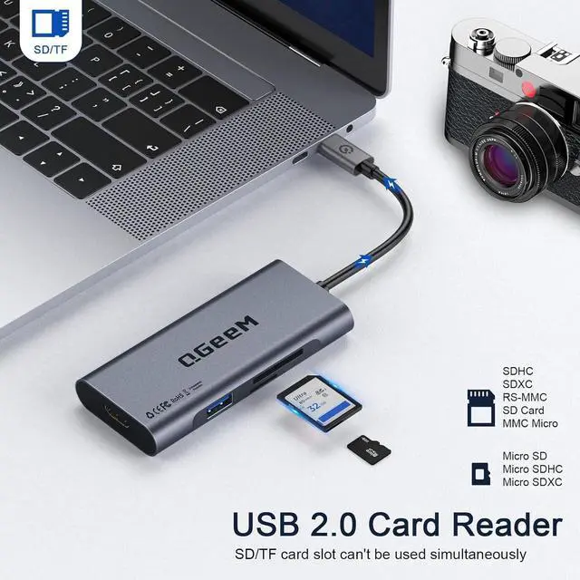 USB C Multi-Port Adapter: QGeeM dongle adapter usb c is plug-and-play no driver required and can expand a single USB-C port to 7 ports (1*HDMI 4K@30HZ 3*USB 3.0 1*Type-C PD charging 1*Micro SD card slot 1*SD card slot). The portable design docking station can meet your needs for multiple device connections and data transfer easily facing your work at home office or on the go! 4K Visual Feast