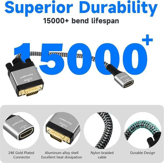High Quality Materials: This cable uses oxygen free copper inner conductor which has stronger conductivity. Multilayer copper shielding minimizes signal loss to the greatest extent possible. The use of 24K gold-plated connectors is more corrosion-resistant. High quality aluminum shells provide better heat dissipation. Durable nylon braided jacket with a bending life exceeding 15 000+ extending service life.