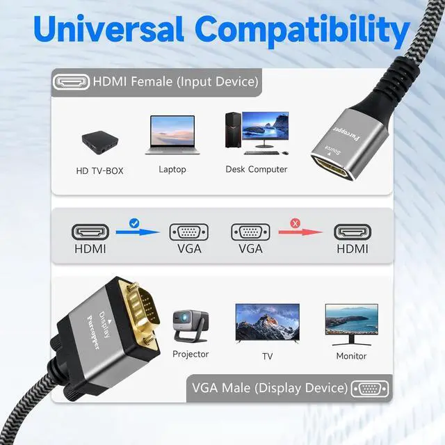Wide Compatibility: This HDMI to VGA Adapter is compatible with all HDMI output devices and VGA input devices. Such as PC Laptop Chromebook Set Top Box Switch TV Box MacBook PS4/5 Xbox TV and More.