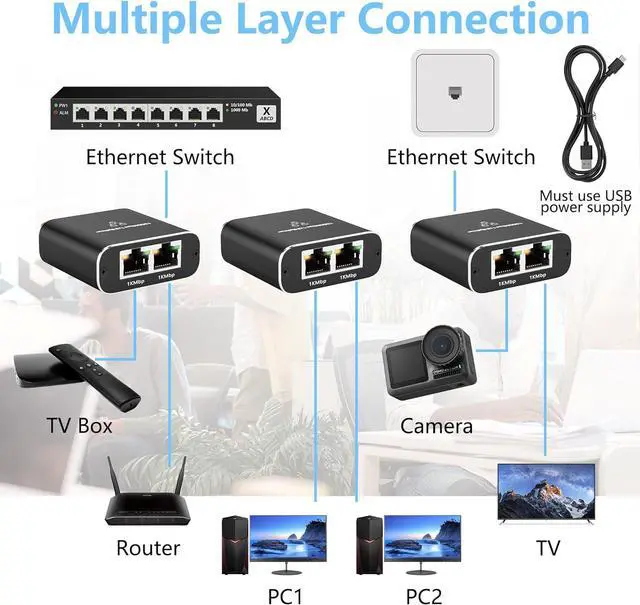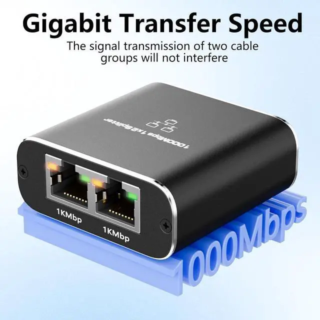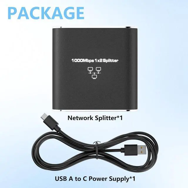 Ethernet Splitter: Conable Gigabit Ethernet splitter provides you with an efficient network expansion solution solving the problem of insufficient network cabling leading to insufficient network ports. It is powered by an included USB cable (must be plugged in) allowing you to quickly expand a single network splitter port to two sharing a single Ethernet cable. In addition the device is equipped with six LED indicator lights making it easy for you to accurately determine the currently running connected device.