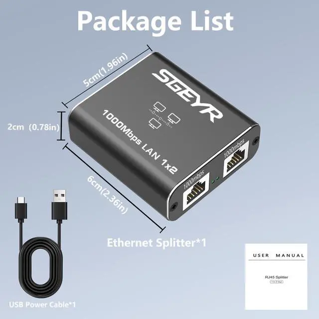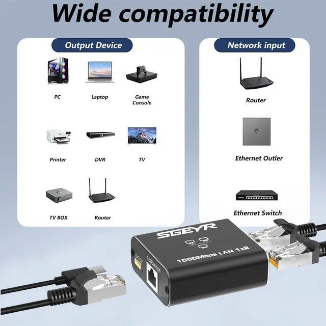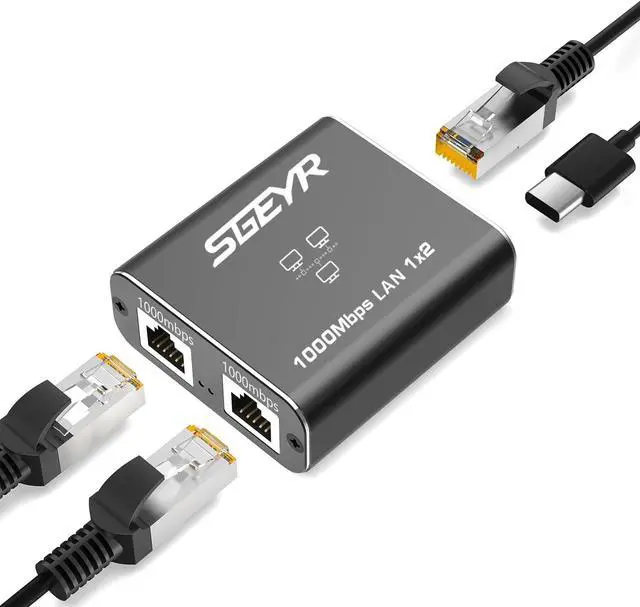 • SGEYR Ethernet SplitterRJ45 Internet Splitter 1000Mbps High-Speed Network Hub RJ45 Adapter for Cat 5/5e/6/7/8 Cables Connects 2 Devices Simultaneously