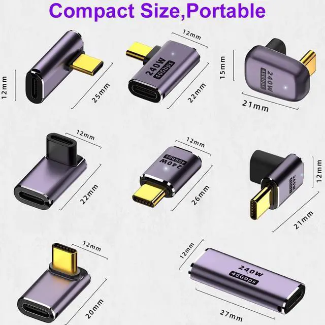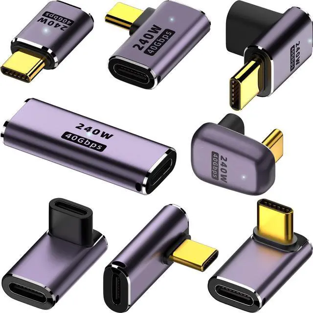 FUNCTIONS: 8 in 1 Pack Meet Your Various Needs. These USB C adapters have different steering functions which can change the direction of the cable thus avoiding the wear and tear of the cable and the input port of the device and prolonging the life of the cable.?? 240W