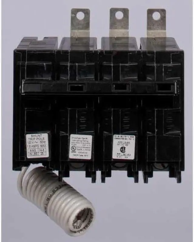 Miniature Circuit Breaker, Amps 50 A, AC Voltage Rating 120/240V AC, Circuit Breaker Type Shunt Trip, Number of Poles 3, DC Voltage Rating Not Rated, Circuit Breaker Actuator Toggle, Circuit Breaker Mounting Style Bolt On, Compatible Panelboard/Load Center Series P1, Phase Three, Series BL, Max. AIR Rating 10kA at 240V AC, For Use With Siemens P1 Panelboards, Terminal Connection Lug, Frame Size 125A/BL, Length 3.7 in, Width 4.4 in, Depth 5.4 in, Min. Wire Size 8 AWG. This item has been restricted from sale in the following state (s): []