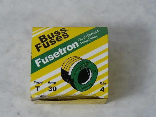 Plug Fuse, 30A, 125 V AC, Not Applicable, T Series, Indicating, Time-Delay, Body Style Plug, Non-Rejection, Interrupt Rating 10kA at 125V AC, Equivalent Brand and Series Bussmann T, Littelfuse TOO, Mersen GT, Equivalent Series GT, T, TOO, Body Material Ceramic, Dual Element, Standards CE, CSA Class 1423-01, UL 248-11 Guide JFHR, Package Quantity 4. This item has been restricted from sale in the following state (s): []