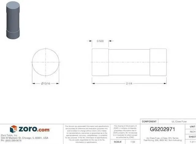 Fuse, 20 A, 600 V AC, 450 V DC, Class J, DFJ Series, Non-Indicating, Fast-Acting, Body Style Cylindrical, Fits Fuse Block Style Non-Rejection, Interrupt Rating 100kA at 450 V DC, 200kA at 600 V AC, Fuse Size 2-1/4 in L x 13/16 in dia, Length 2 1/4 in, Diameter 13/16 in, Equivalent Brand and Series Bussmann DFJ, Littelfuse LDFJ, Mersen HSJ, Equivalent Series DFJ, HSJ, LDFJ, Compatible Fuse Block Series CH30J, JM600, JP600, JT600, JTN600, Body Material Melamine, Single Element.