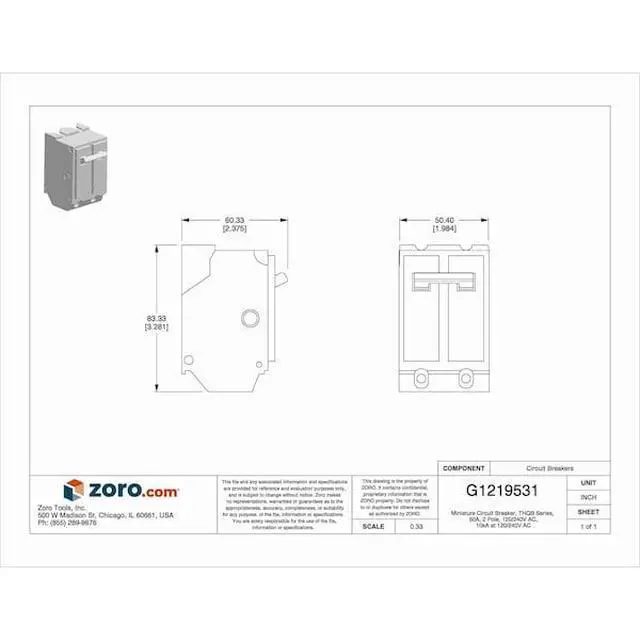 Miniature Circuit Breaker, Amps 50 A, AC Voltage Rating 120/240V AC, Circuit Breaker Type Standard, Number of Poles 2, DC Voltage Rating Not Rated, Circuit Breaker Actuator Toggle, Circuit Breaker Mounting Style Bolt On, Phase Single, Series THQB, Max. AIR Rating 10kA at 120/240V AC, For Use With Lighting Panels, Load Centers, Terminal Connection Lug, Frame Size 100A/THQ, Length 3.53 in, Width 1 in, Depth 3.28 in, Min. Wire Size 8 AWG, Max. Wire Size 3 AWG, Standards UL Listed.