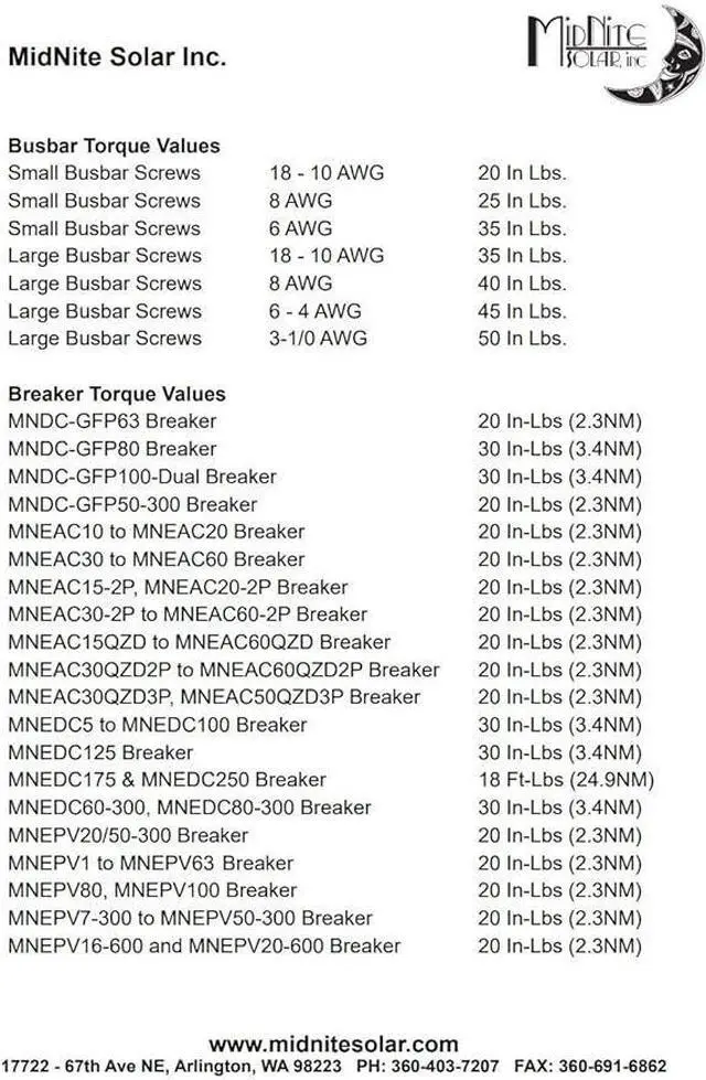 Breaker Torque Value: 20 In-Lbs (2.3NM)