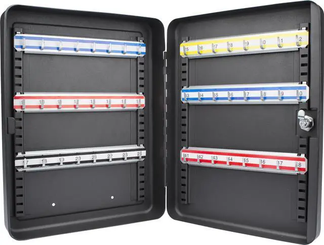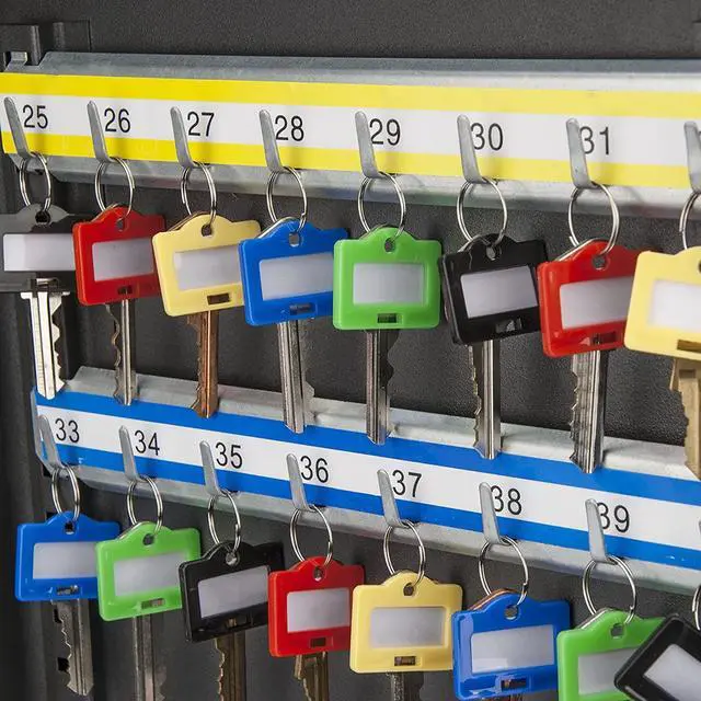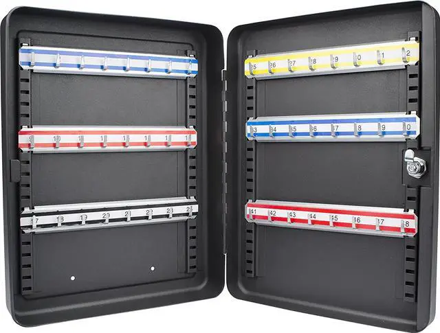 Inside this sturdy lock box, you'll find three rows of color-coded and numbered hooks. These hooks are not only easy to access but also simple to keep track of, thanks to the included key index. This feature makes it an ideal choice for those who need to manage multiple keys in a systematic manner.