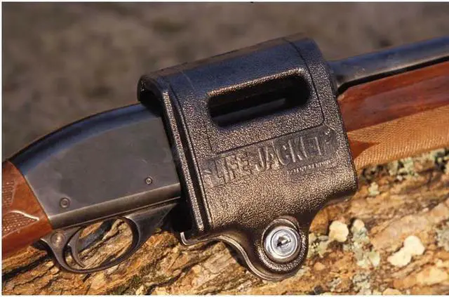 The Life Jacket 3, constructed of high-strength polycarbonate is the perfect solution to securing most semi-auto and pump shotguns. Its specially designed "chamber lock" plugs right in to the chamber for absolute protection. The LJ3 has a foam-padded interior that won't scuff the finish of the gun, and a steel-reinforced perimeter for added strength.