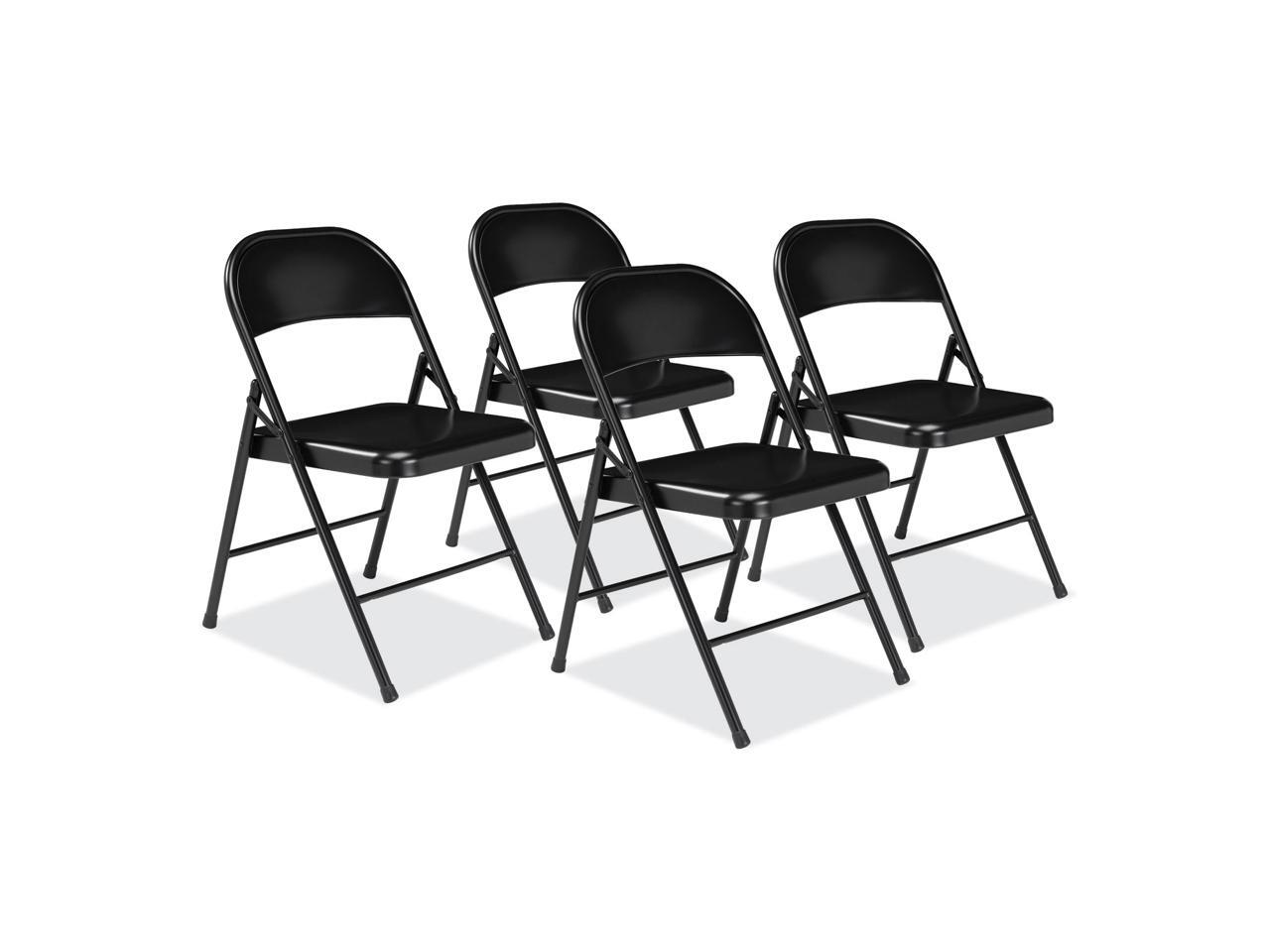 NPS 910 900 Series All-Steel Folding Chair - Supports Up to 250 lb - 17.75" Seat Height - Black Seat, Black Back, Black Base - 4/Carton