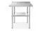 This heavy-duty table by GRIDMANN is constructed from 18-gauge #430 stainless steel, and is the perfect work surface for use in a kitchen, bar, restaurant, laundry, school, hospital, or any other commercial setting. It is NSF certified to meet strict standards for public health protection and built for high-volume use to last a lifetime. This stainless steel table features an extra heavy-duty top with a 1-1/4" backsplash, an adjustable-height galvanized Undershelf, and galvanized legs with adjustable non-marring feet that eliminate table wobble on uneven floors. The edges on the front and back of the tabletop are rounded for working comfort.