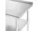 This heavy-duty table by GRIDMANN is constructed from 18-gauge #430 stainless steel, and is the perfect work surface for use in a kitchen, bar, restaurant, laundry, school, hospital, or any other commercial setting. It is NSF certified to meet strict standards for public health protection and built for high-volume use to last a lifetime. This stainless steel table features an extra heavy-duty top, an adjustable-height galvanized under-shelf, and galvanized legs with adjustable non-marring feet that eliminate table wobble on uneven floors. The edges on the front and back of the tabletop are rounded for working comfort.