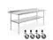 This table also includes four caster wheels designed for Gridmann stainless kitchen prep tables but will fit any legs with a 1-1/2" diameter opening. The composite 4 inch wheel is chemical resistant and built for use in the commercial kitchen environment. Each wheel is rolls smoothly and they easily pivot on a full set of ball bearings. The wheels are non-marring and work on almost any solid surface. Two of the wheels include brakes that can be locked down to keep your table in place. Some assembly required.