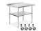 This table also includes four caster wheels designed for Gridmann stainless kitchen prep tables but will fit any legs with a 1-1/2" diameter opening. The composite 4 inch wheel is chemical resistant and built for use in the commercial kitchen environment. Each wheel is rolls smoothly and they easily pivot on a full set of ball bearings. The wheels are non-marring and work on almost any solid surface. Two of the wheels include brakes that can be locked down to keep your table in place. Some assembly required.