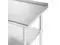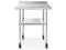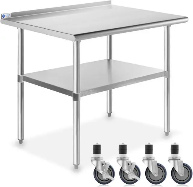 This heavy-duty table by GRIDMANN is constructed from 18-gauge #430 stainless steel, and is the perfect work surface for use in a kitchen, bar, restaurant, laundry, school, hospital, or any other commercial setting. It is NSF certified to meet strict standards for public health protection and built for high-volume use to last a lifetime. This stainless steel table features an extra heavy-duty top, an adjustable-height galvanized under-shelf, and galvanized legs with adjustable non-marring feet that eliminate table wobble on uneven floors. The edges on the front and back of the tabletop are rounded for working comfort.