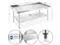 Includes: Stainless steel tabletop, shelf, legs, hardware, and instructions to complete assembly.