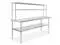 This heavy-duty table and double overshelf by Gridmann is constructed from 18-gauge #430 stainless steel, and is the perfect work surface for use in a kitchen, bar, restaurant, laundry, school, hospital, or any other commercial setting. It is NSF certified to meet strict standards for public health protection and built for high-volume use to last a lifetime. This table features an extra heavy-duty top, an adjustable-height galvanized under-shelf, and galvanized legs with adjustable non-marring feet that eliminate table wobble on uneven floors. The edges on the front and back of the tabletop are rounded for working comfort.