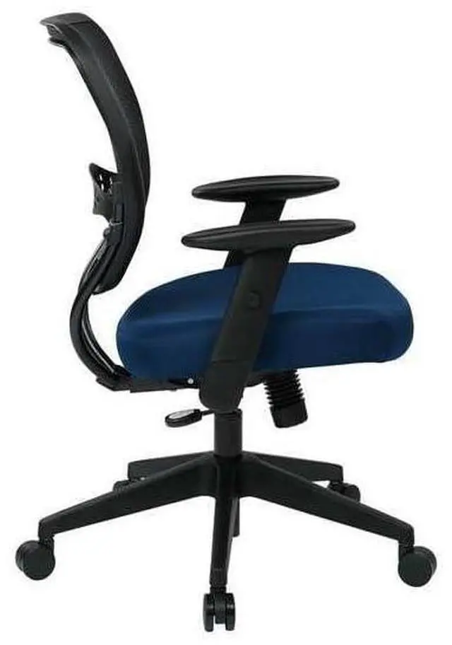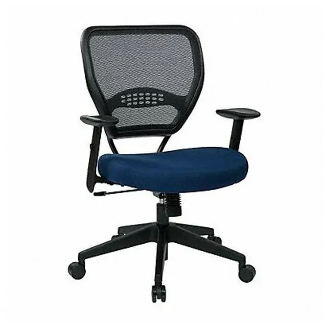 Desk Chair, Desk Chair, Back Color Family Blue, Back Material Family Mesh, Seat Material Fabric, Back Material Mesh, Nominal Seat Height Range 19 in to 23 in, Seat Color Navy Blue, Weight Capacity 250 lb, Unassembled, Seat Height Min. 18 3/4 in, Seat Height Max. 23 in, Back Height 19 in, Arm Style Adjustable, Caster Type Carpet, Overall Height 42 in, Overall Width 27 in, Overall Depth 26 1/2 in, Seat Width 20 1/2 in, Seat Depth 19 1/2 in, Back Width 20 1/2 in, Number of Casters 5
