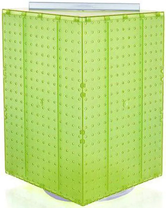 This 4-sided pegboard interlocking counter unit measures 14" W x 14" D x 20" H and sits on a revolving plastic base. Easy to assemble (no tools required). Sign holder and hooks sold separately.